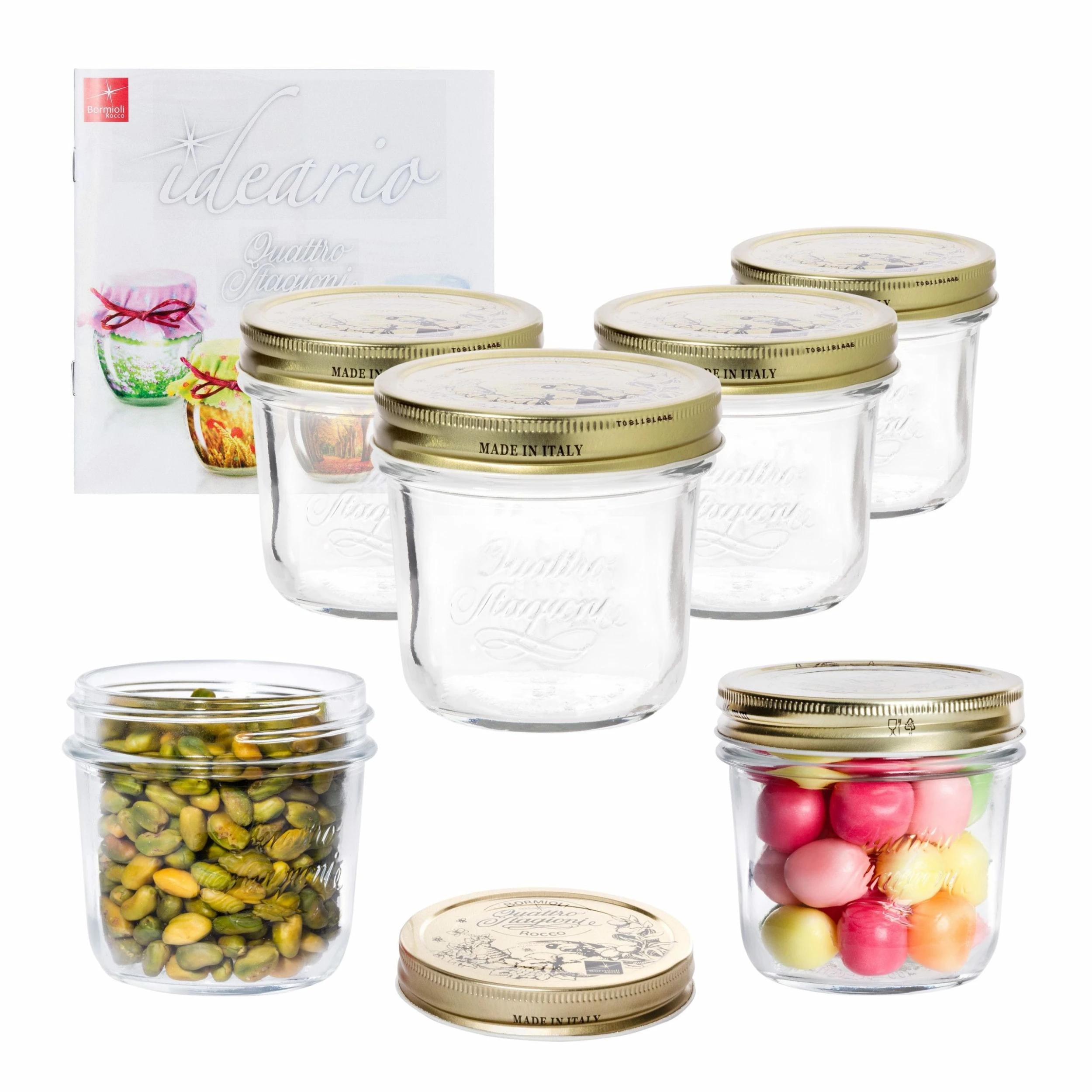 12er Set Original QUATTRO STAGIONI Einmachglas von Bormioli Rocco, 1000 ml, mit Deckel, Vorratsglas, Deko-Glas, inkl. Original Bormioli Rezeptheft